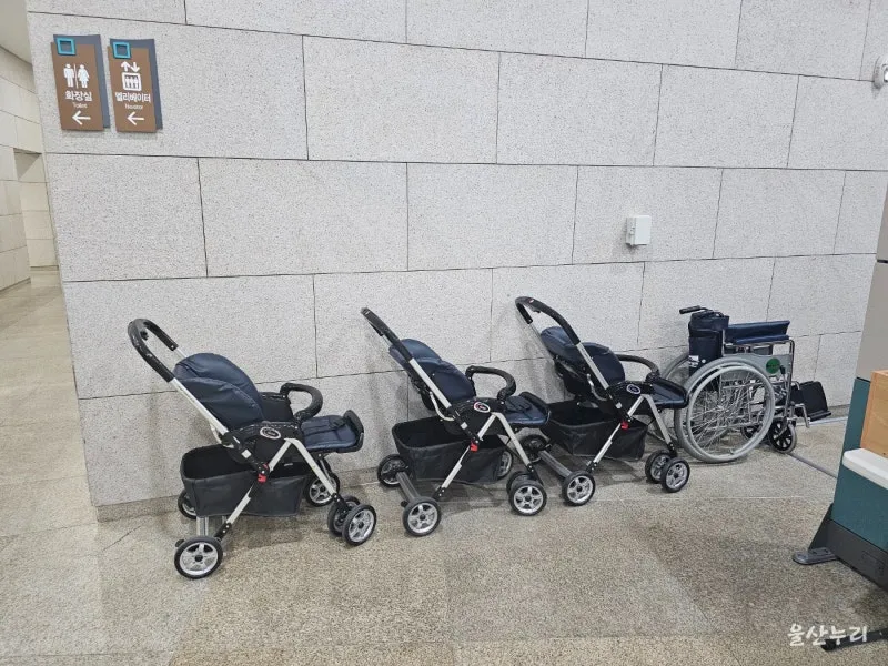 입구에는 장애인 및 유아등 사회적 약자를 위한 유모차와 휠체어가 비치가 되어 있어 사회적 책임을 다하고 있었습니다.