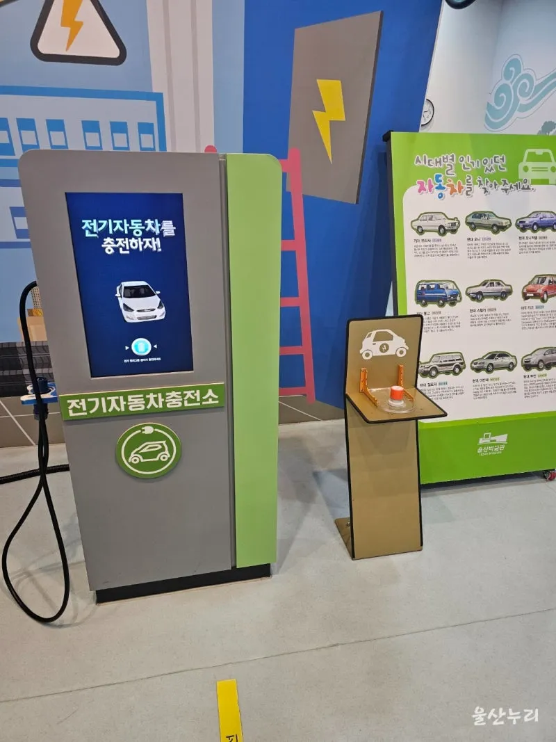 울산하면 떠오르는 이미지는 현대자동차이며 친환경 자동차인 전기자동차와 자동차의 역사에 대해 설명이 되어 있었습니다.