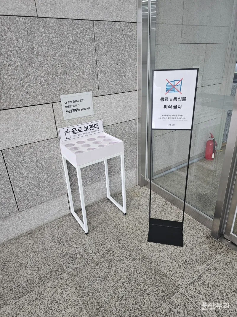 박물관 내부에는 관람 시 음료 및 음식물 취식 금지이므로 별도 음료 보관대를 비치하고 있었습니다.