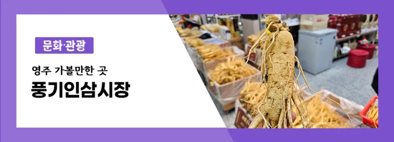 삼삼(蔘蔘)한 인삼향이 가득한 인삼시장을 방문해 보신적 있으신가요? 인삼의 고장인 영주에는 풍기인삼을 직접 보고, 살 수 있는 인삼시장이 잘 형성돼 있는데요. 오늘은 풍기역 앞에 위치한 영주 가볼 만한 곳 풍기인삼시장을 소개해 드릴게요.