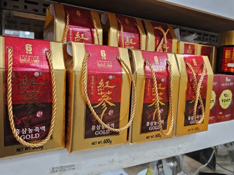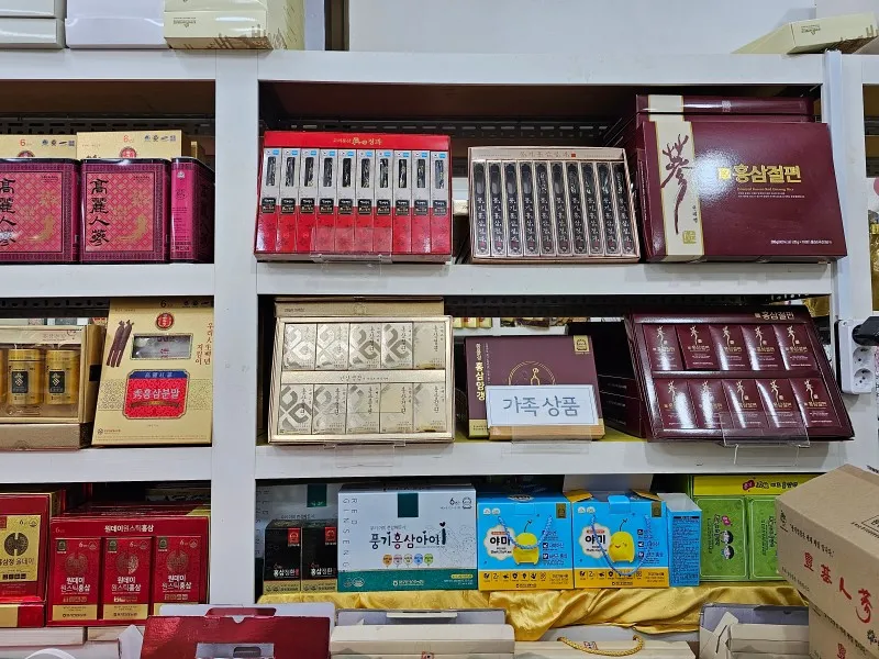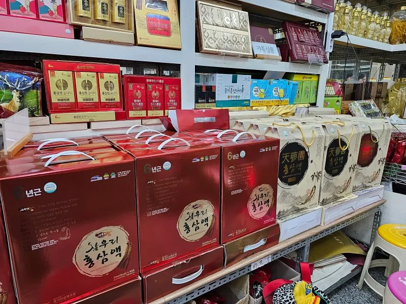 풍기인삼시장에는 풍기인삼 외에 인삼과 홍삼으로 만든 가공품들도 많이 있어요. 홍삼액을 비롯해 달여 먹을 수 있는 건뿌리도 있어요. 홍삼절편과 분말도 판매하고 있었는데요. 다가올 어버이날엔 인삼가공 제품으로 선물 준비할까 봐요.