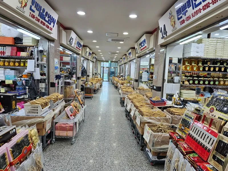 인삼시장 내부는 환하고 깔끔해서 방문객들에게 좋은 이미지를 주고 있어요. 눈길이 가는 곳곳마다 풍기인삼이 있는데요. 평일 오전이라 한산한 분위기죠? 하지만 주말이나 가을 인삼철이 되면 인산인해를 이루기도 합니다.