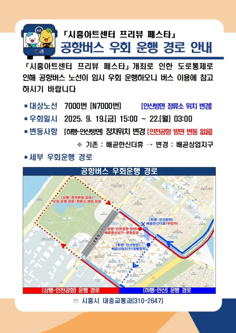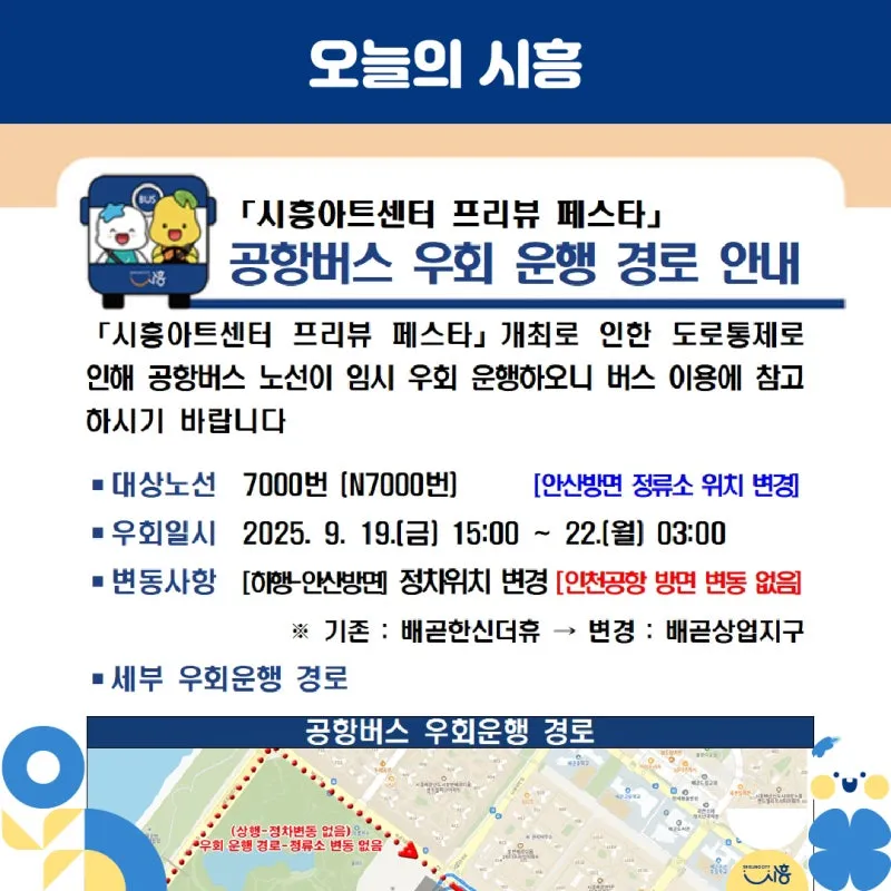 「시흥아트센터 프리뷰 페스타」 공항버스 우회 운행 경로 안내