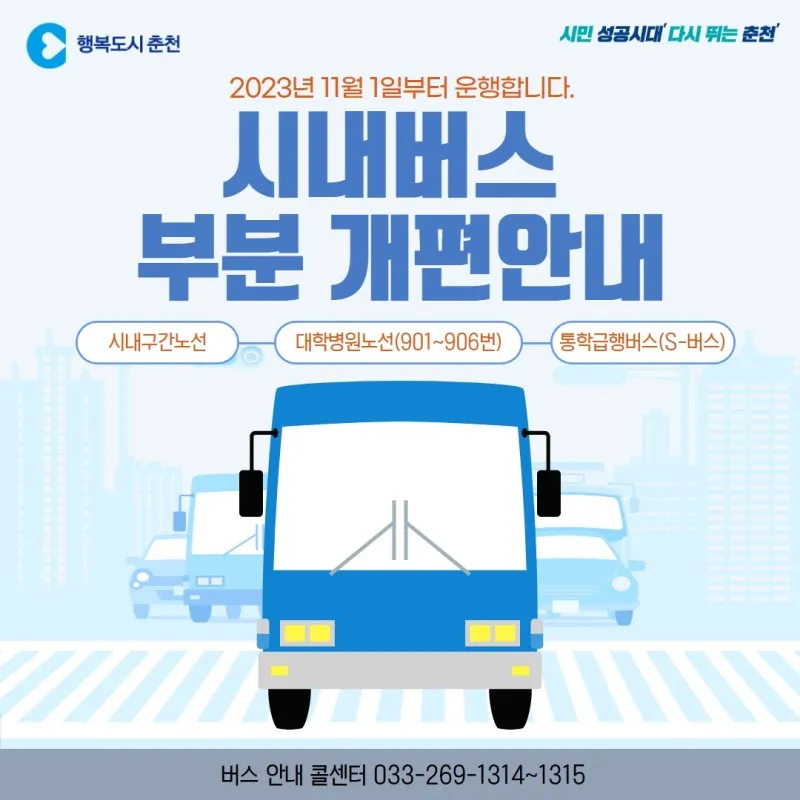 춘천시 시내버스 부분 개편 안내(11월 1일~)