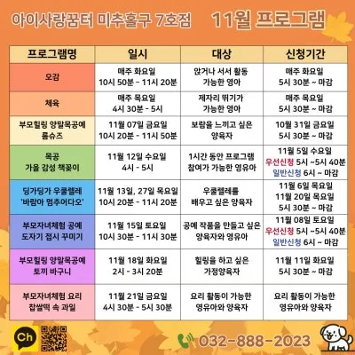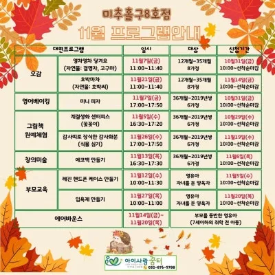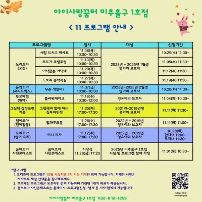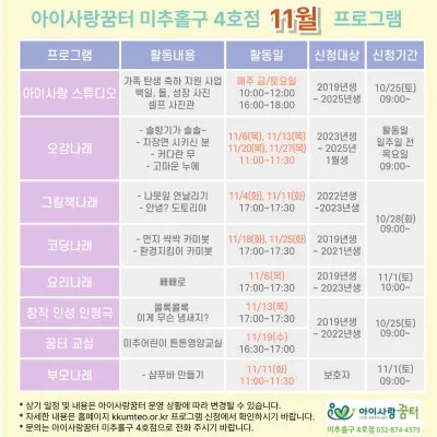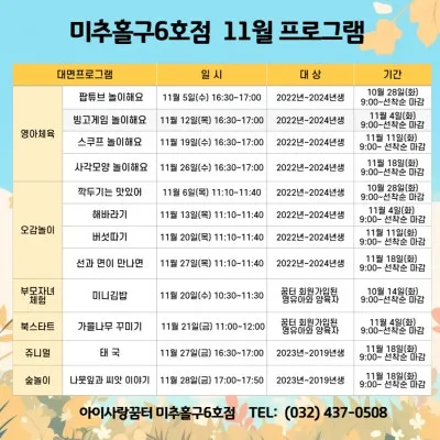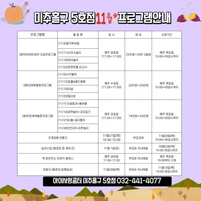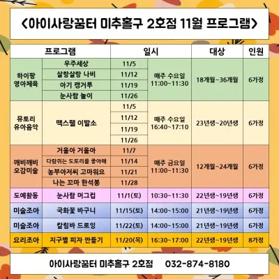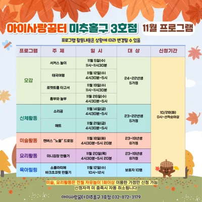 미추홀구 아이사랑꿈터 11월 프로그램 안내