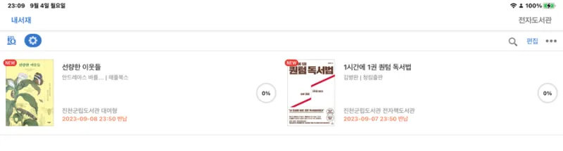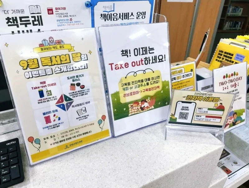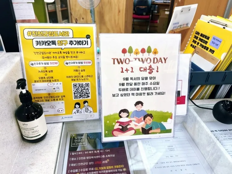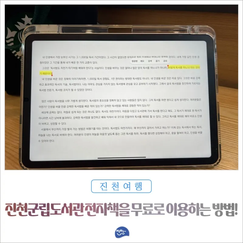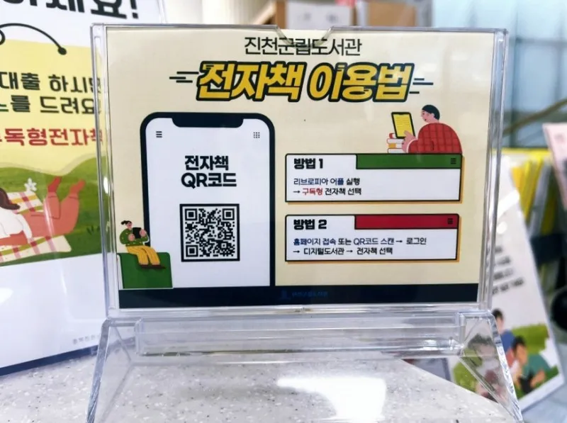 그 와중에 종이책 대출을 하다가 진천군립 도서관의 전자책 이용 방법이 눈에 띄었는데요. 주변 지인들이 전자책 유료 결제 앱을 사용한다는 이야기가 생각나기도 하고, 진천군립 도서관 전자책을 무료로 이용하는 방법을 아직 모르시는 분들이 계실 것 같아 공유해 보려고 합니다.