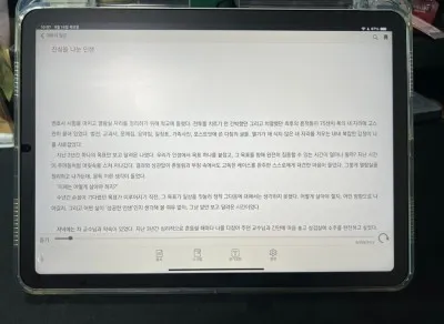 읽고 싶었던 책들을 패드 하나에 소장하며 시간 날 때마다 언제든 독서할 수 있어서 정말 간편했습니다. 의지만 있다면 다독할 수 있어서 전자책 처음 사용해 보는 저도 너무 편리하고 좋더라고요. 책장 넘기기와 메뉴바를 사용하는 방법 역시 직관적이고 편리하게 만들어져 있답니다.