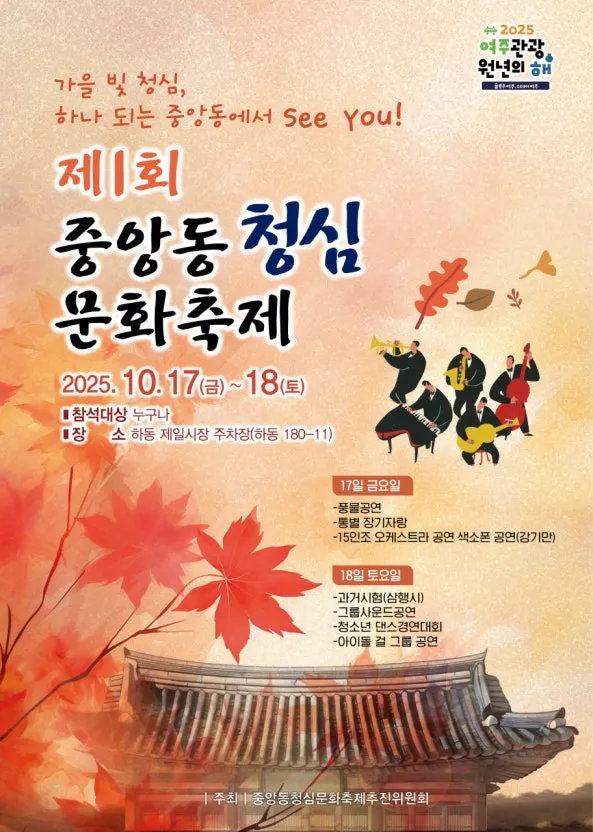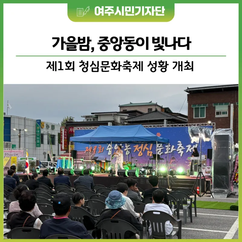여주시 하동제일시장 주차장에서 ‘제1회 중앙동 청심 문화축제’가 10월 17일(금) 오후 5시 개회식을 시작으로