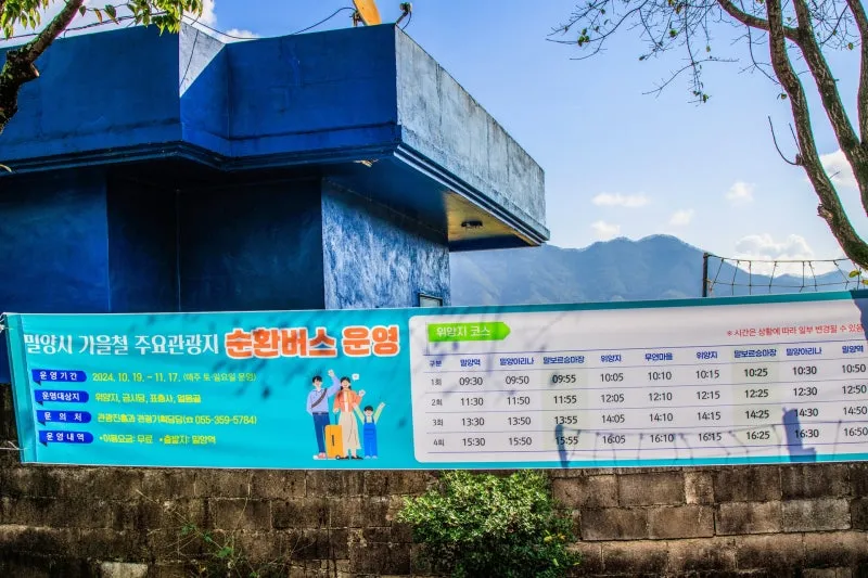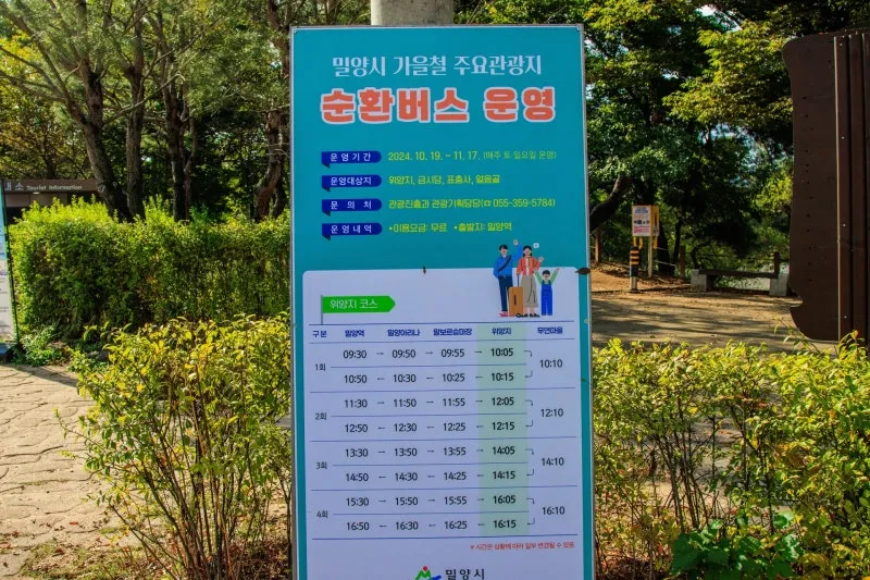 어디론가 떠나고 싶은데 차가 문제이신 뚜벅이 여행자분들은 위양지 코스외 표충사와 얼음골 코스도 밀양시 가을 철 순환버스 투어 도전해 보시기를 추천드립니다.