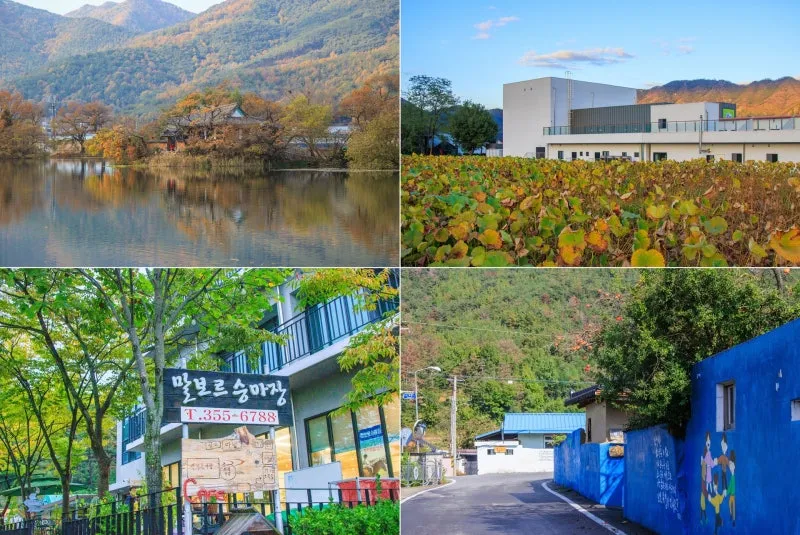 다음 코스는 위양지 주변에서 식사를 할 수 있는 식당들이 모여 있는 곳, 퇴로 고가마을에 정차합니다. 위양지 주변에서 식사할 곳은 앞서 지나왔던 밀양 아리나 연극 촌에도 3곳의 식당이 있으니 참고하시면 되겠습니다.
