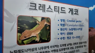 파충류 전시실은 곤충과는 또 다른 매력을 지닌 공간으로, 크레스티드 게코를 비롯한 12종의 파충류가 전시되어 있습니다.