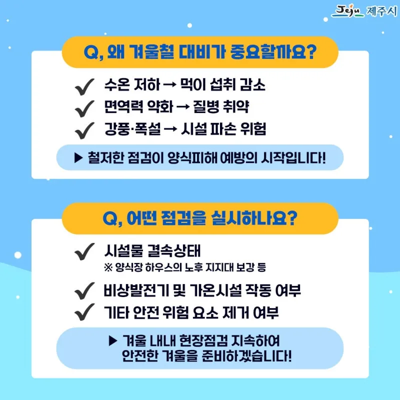 제주시는 올 겨울, 양식 피해를 예방하기 위한 사전 현장 안전점검에 나섭니다.😎💪