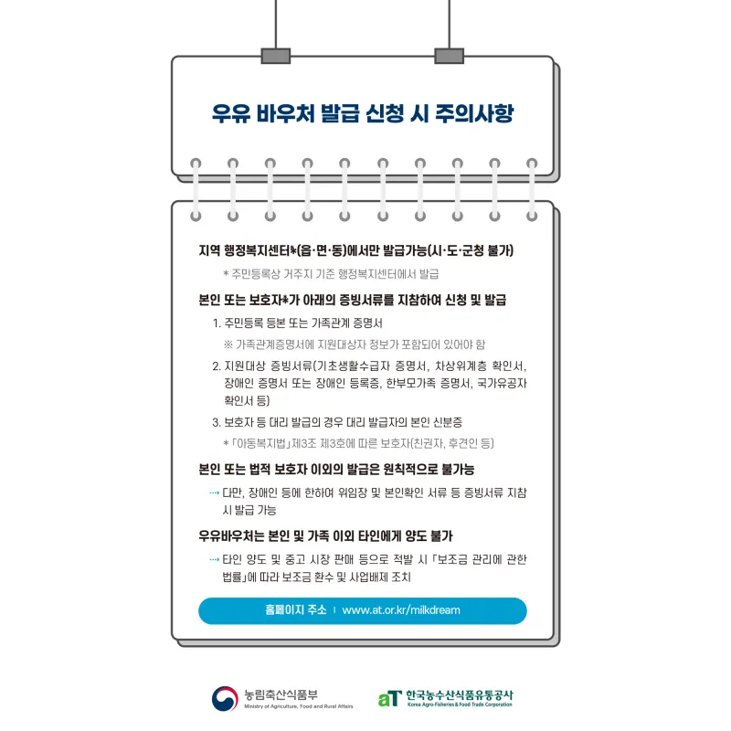 2024년 2월 19일부터 상시 접수이며, 신청 대상자에게는 우유 바우처 전자카드가 지원됩니다.
