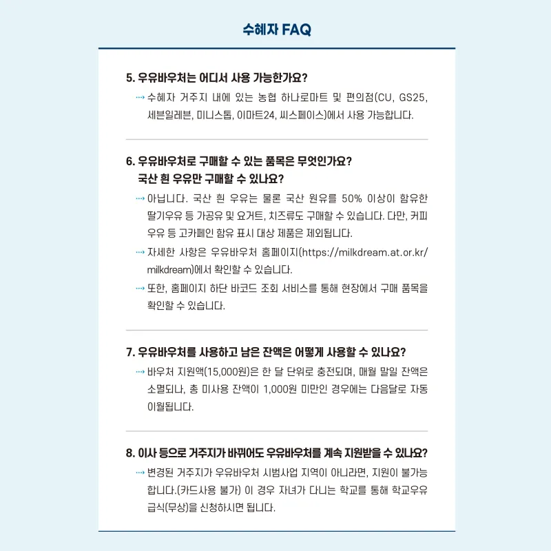 ✅지원금액 : 우유 바우처 전자카드 월 15,000원 지원