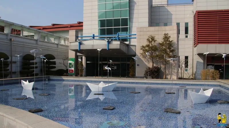입구의 종이배 조형물이 남해의 낭만을 표현하고 있습니다.
