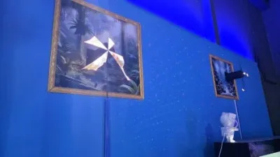 세 면의 반사판에 영상을 투사해 입체적인
