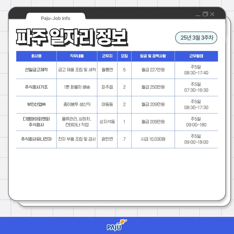 3월 3주차 파주 일자리 정보를