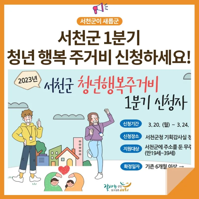 서천군, “1분기 청년 행복 주거비 신청하세요!”