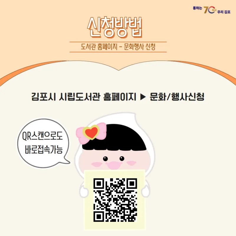 신청방법 : 고촌도서관 홈페이지 - 문화행사 신청