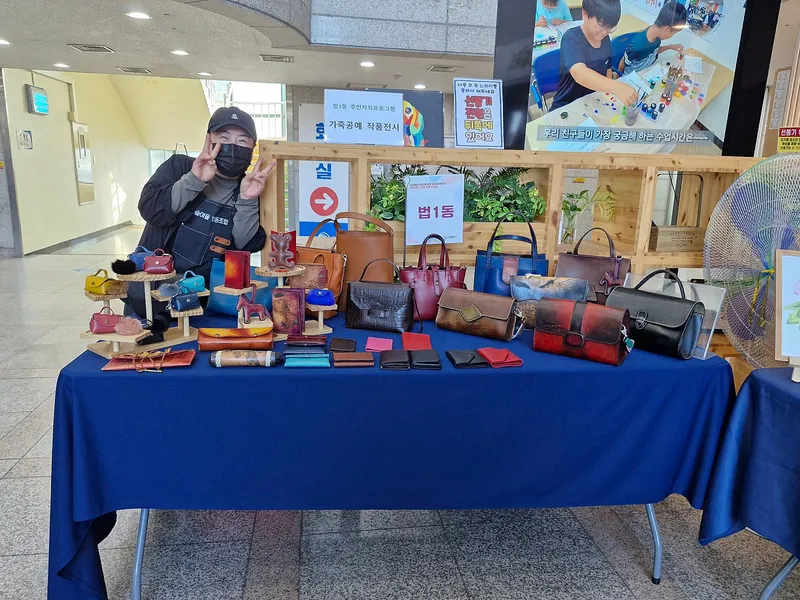 법1동주민자치회에서는 가죽공예 작품을 자랑했습니다. 이 가죽제품은 고급스러운 염색을 하니 고급스러움이 드러나, 보는 이의 마음을 풍성해지게 만들었습니다.
