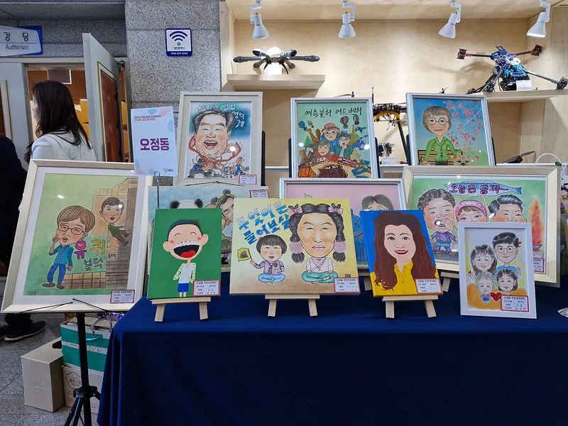 오정동주민자치회 프로그램을 수강한 주민들은 캐리커처 작품을 전시했습니다. 사람의 특징을 찾아내서 빠르게 그리는 것이 캐리커처인데 정성껏 그린 그림은 전시회를 방문한 주민들 발길을 붙잡았습니다. 새로운 형식의 그림에 오늘 행사장을 찾은 주민들은 신기해하며 탄성을 자아냈습니다.