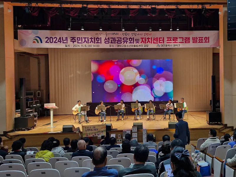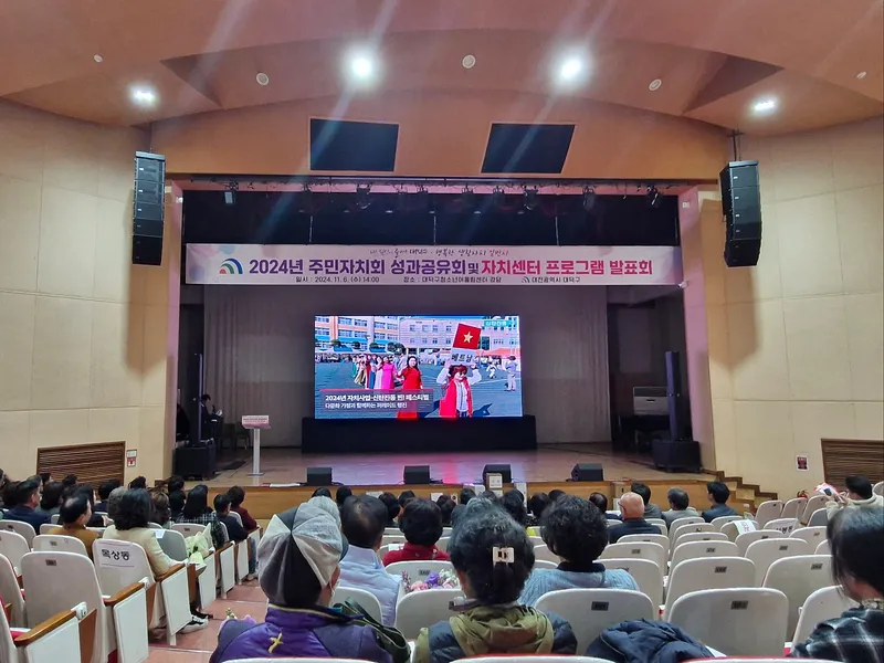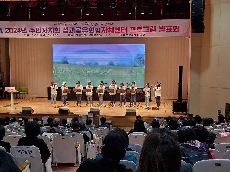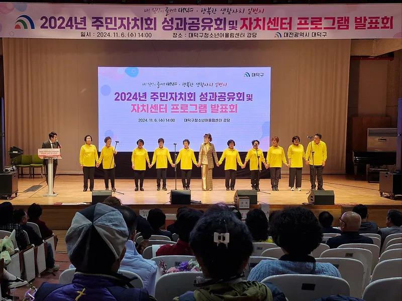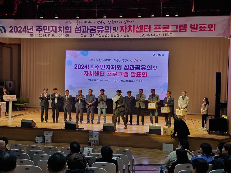 지난 11월 6일 14시, 대덕구 청소년어울림센터(대덕구 쌍청당로 25) 강당에서는 대덕구 구민들의 열기로 갑자기 찾아온 추위를 녹이기에 충분했습니다. 2024년 주민자치회 성과공유회 및 자치센터 프로그램 발표회가 열리고 있었기 때문입니다.