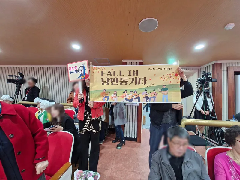 목상동 FALL IN 낭만 통기타 연주를 응원하는 현수막도 등장했습니다. 각자 자기 동을 응원하는 도구를 사용하였는데 현수막을 준비해 오신 분도 있었습니다.