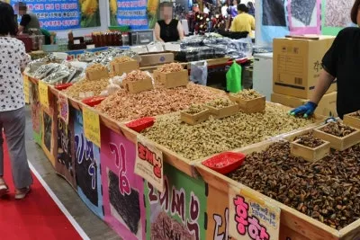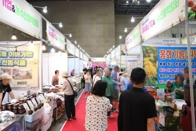입구에 들어서자마자 콩국물, 청국장, 젓갈 등 다양한 전통 먹거리들과 작두콩, 허브차 등의 직접 농사지은 농수산물들을 선보이는 부스가 마련되었으며 각 시식코너를 통해 직접 맛보고 제품 관련 문의가 바로 현장에서 이어지며 이는 곧 구매로 연결되기도 했습니다.