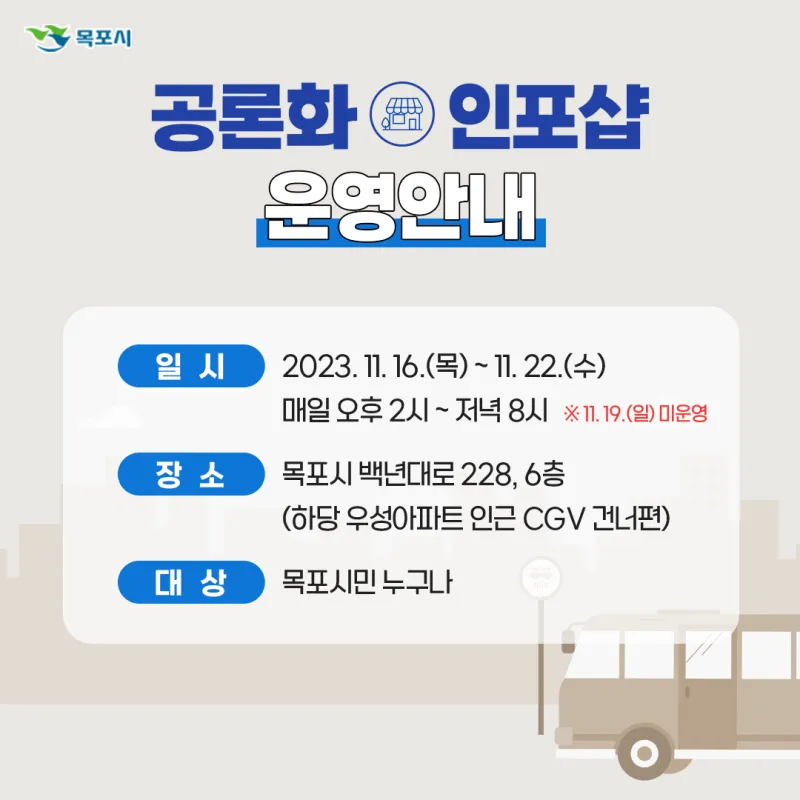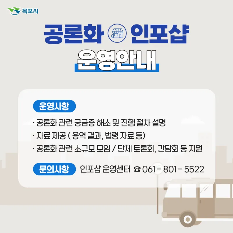 목포형 대중교통시스템 구축을 위한 공론화 인포샵 운영 안내