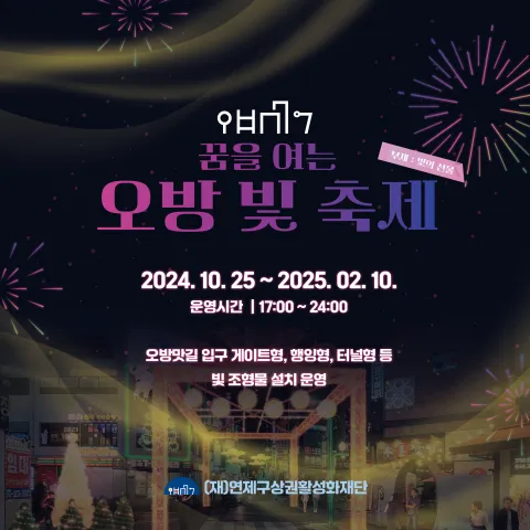 꿈을 여는 '오방 빛 축제' 연제구 일자리경제과 ☎051-665-4472 |