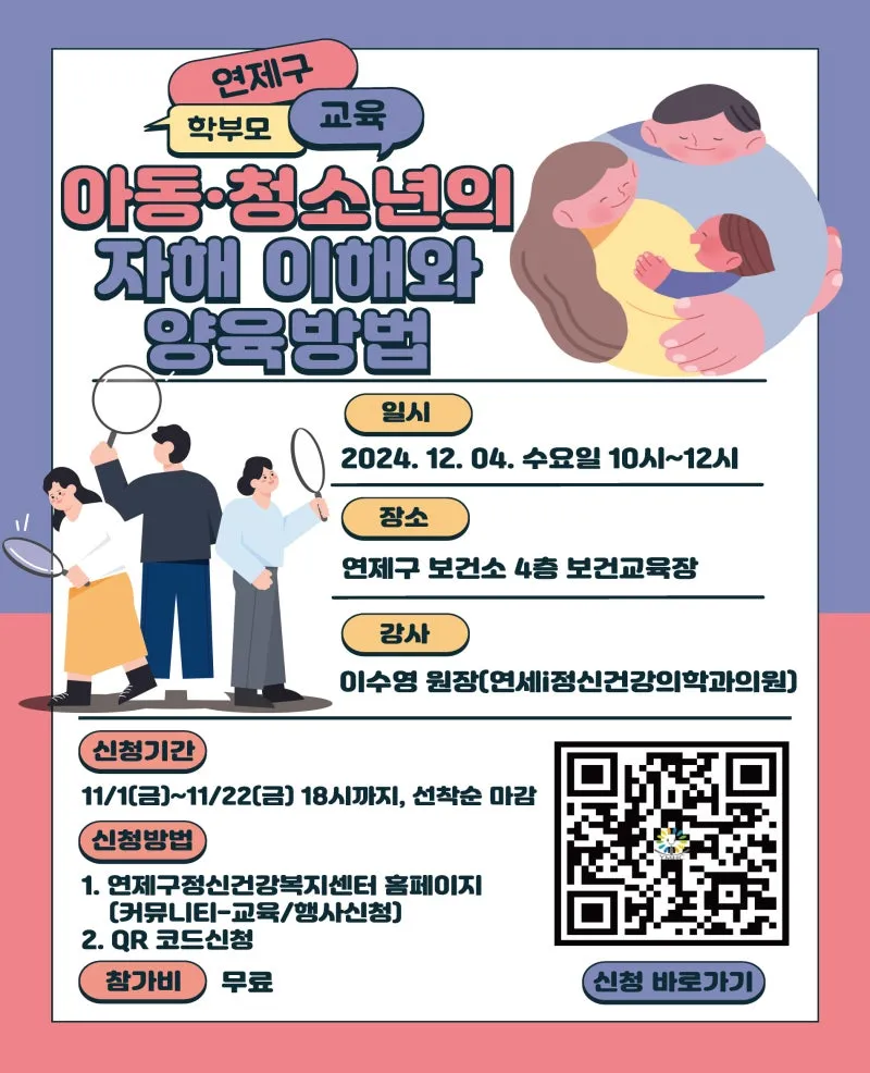 학부모 정신건강증진교육 안내 연제구 정신건강복지센터 ☎051-861-1914 |