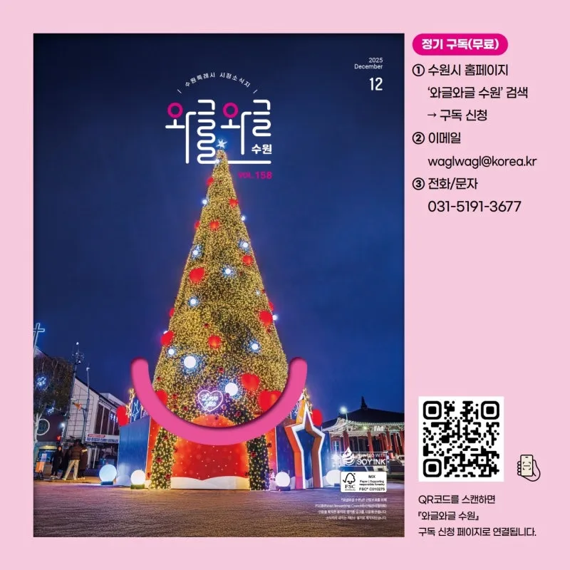 시정소식지 '와글와글 수원' 2025년 12월호 2025 수원 연말결산&수원 크리스마스 즐길 거리 총정리