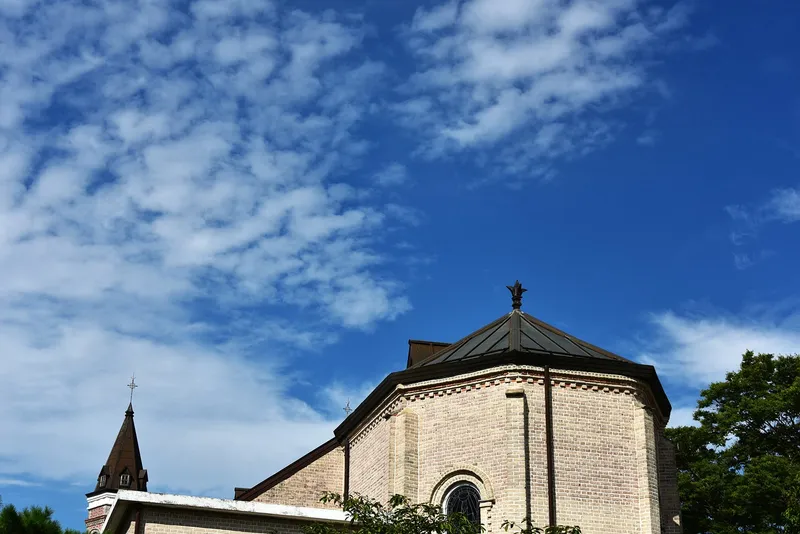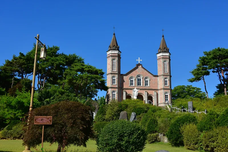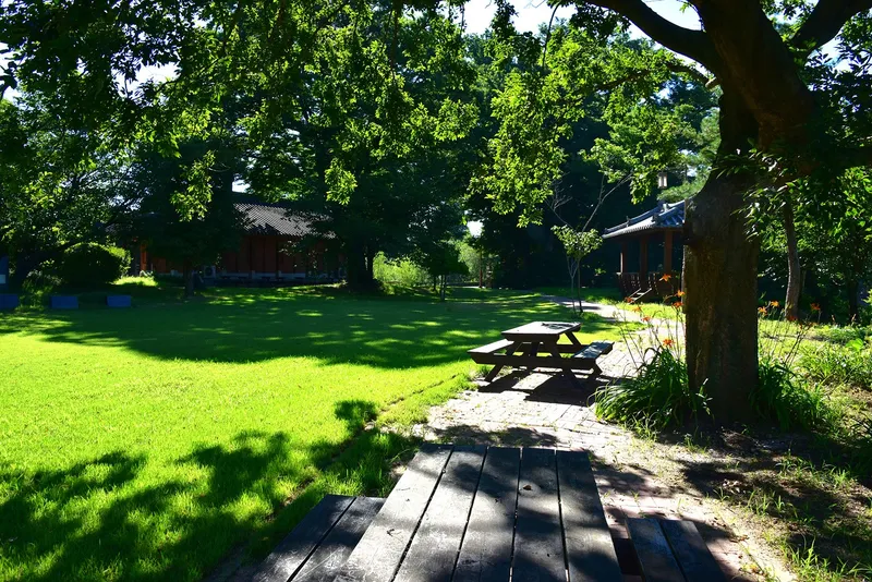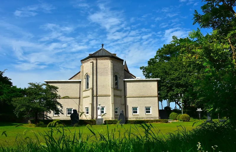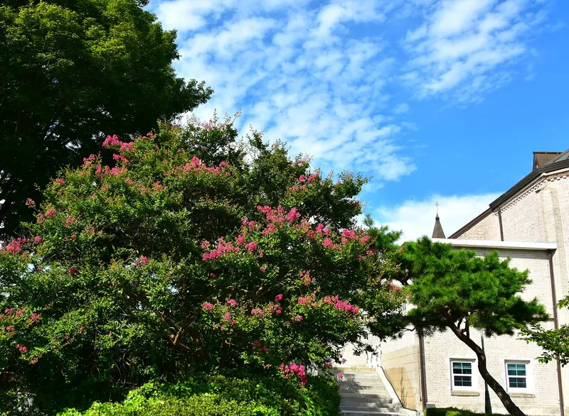 넓은 잔디 마당이 있고 느티나무와 팽나무가 푸르름을 뽐내고 있어 뜨거운 햇빛을 피해 그늘 아래에서 수많은 성직자를 생각하고 현재의 아름다움에 감사합니다.
