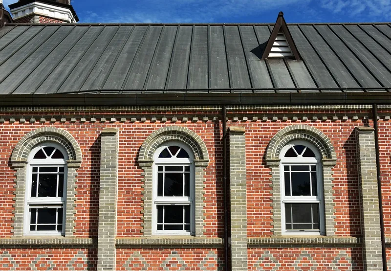 빨간 벽돌과 회색 벽돌이 어우러져 벽면 또한 아름다운 것이 인상적입니다. 오랜 세월이 지났어도 변함없는 건축의 미를 볼 수 있습니다. 연일 계속되는 더위 때문인지 사람의 인기척은 볼 수 없고 합덕성당 건물만 지키고 있는 여름날 풍경입니다.