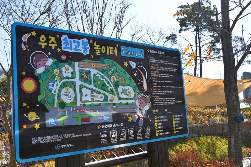 이번에는 진해구청 오른편으로 장복산 올라가는 길 쪽에 위치한 광석골 쉼터를 방문해 보았습니다. 올라가는 입구 주차장 옆으로 요즘 진해 어린이들에게 핫한 장소인 우주 최고봉 놀이터가 있습니다. 아이가 없어 선뜻 참여는 못했지만 어린아이들과 부모님들의 표정에서 재미와 즐거움이 느낄 수가 있었습니다. 평범한 놀이 기구보다 업그레이드된듯한 놀이터로 보였습니다.