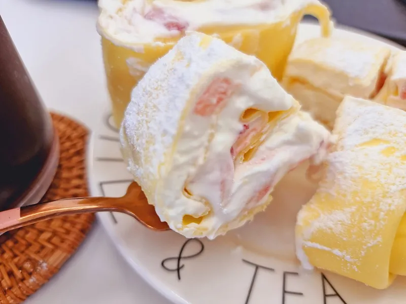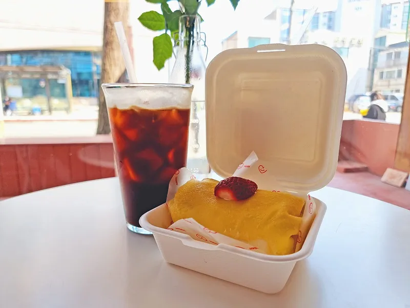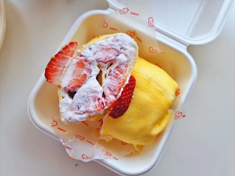 얇은 크레이프 속에 크림을 채운 후