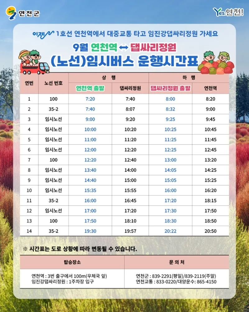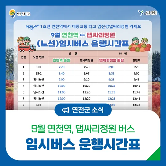 🌳9월 연천역↔️댑싸리정원 : 임시버스 운행시간표