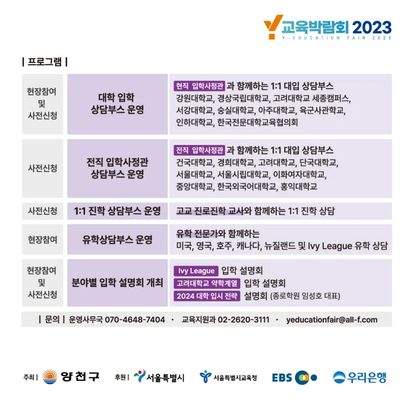 9/9 대학 입학정보 박람회 개최 <Y교육박람회 2023-진로박람회>