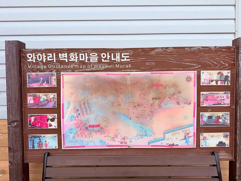 오랜 세월의 흔적을 보여주듯 와야리 벽화마을 안내도는 색이 바래 있었지만, 지도를 보거나 안내를 따르지 않고 발길 닿는 대로 자유롭게 거닐어도 충분히 마을의 매력을 느낄 수 있습니다.