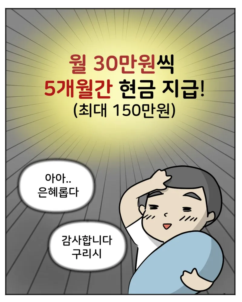 장려금 월 30만원씩 5개월 간 현금 지급 (최대 150만원)