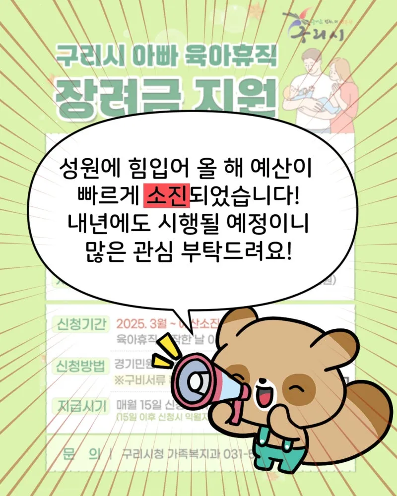 구리시 아빠 육아휴직 장려금 지원 마감안내