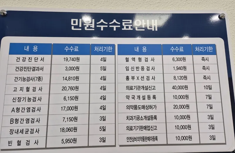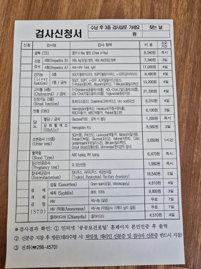 검사 신청서를 작성하고 비용은 현금, 카드로 수납하고 검사실로 가면 됩니다.