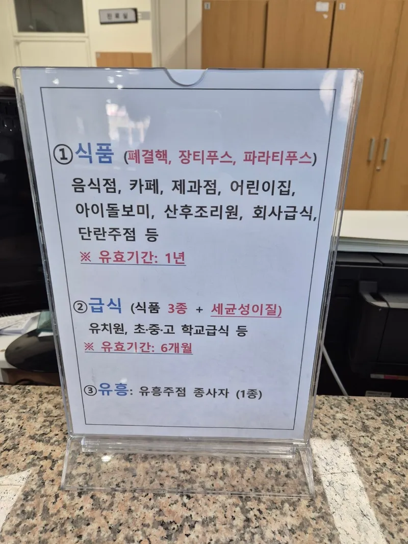 음식점 종사자라면 보통 1년에 한 번 재검사 후 보건증을 갱신해야 합니다.