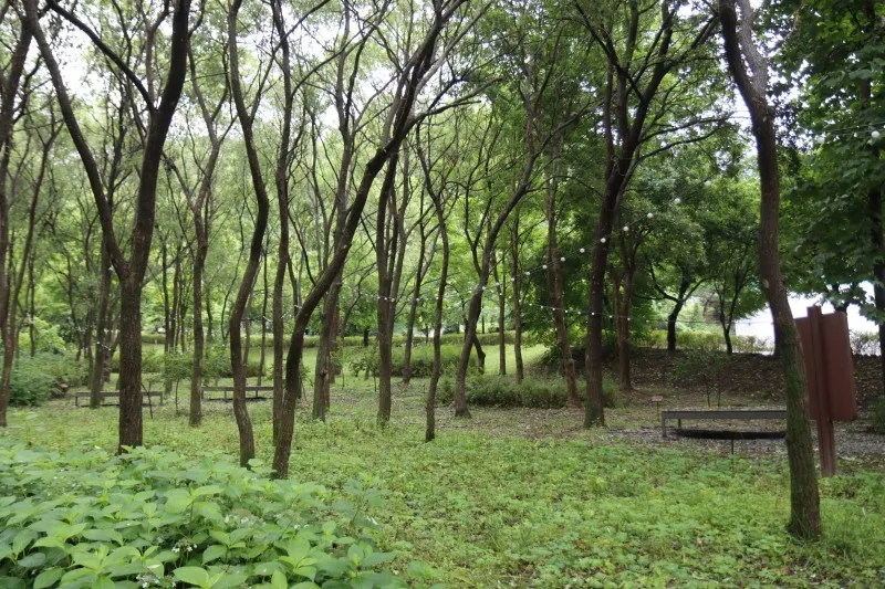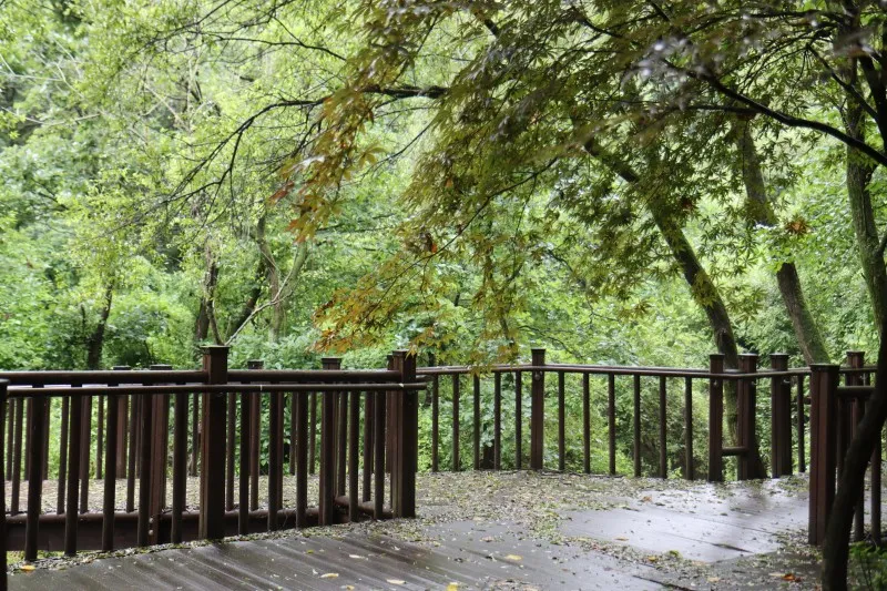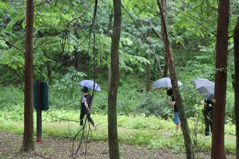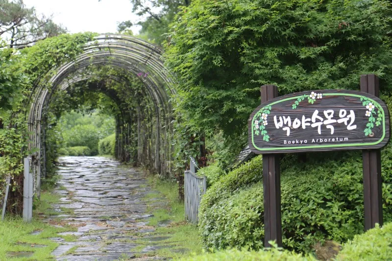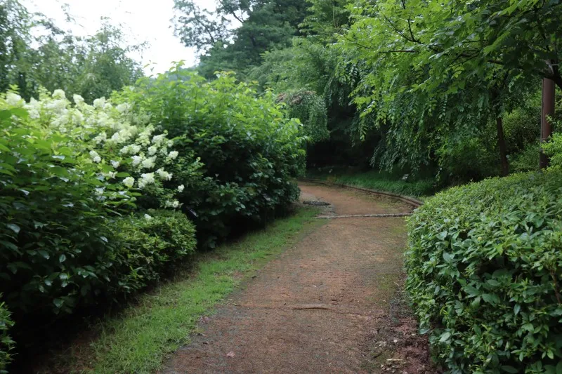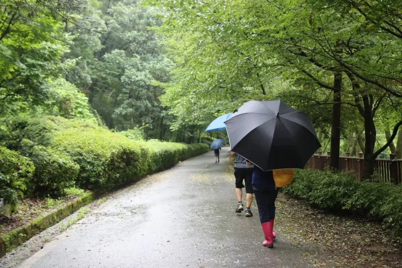 하늘이 보이지 않을 정도로 짙은 녹색 잎들이 터널을 만들어주는 덕분에 우산 하나 들고 힐링 산책을 즐기는 방문객들의 입가에는 미소가 가득합니다.