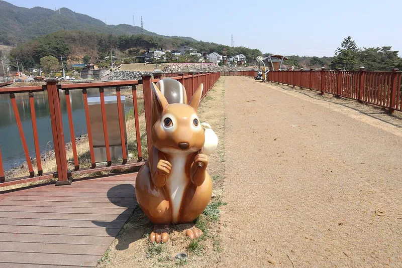 비룡담 쉼터 길에는 귀여운 동물 조형물과 벤치가 있어 쉬어가기 좋게 만들어 놓았다.