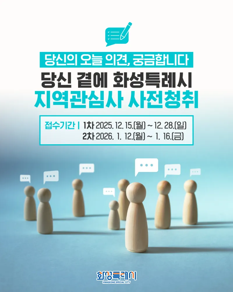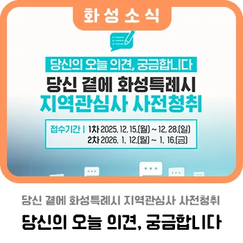 당신의 오늘 의견, 궁금합니다 <당신 곁에 화성특례시 지역관심사 사전청취>