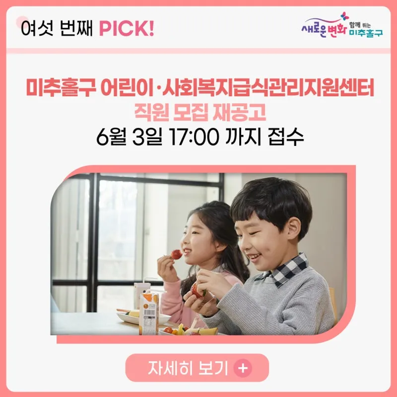 📌 미추홀구 어린이·사회복지급식관리지원센터 직원 모집 재공고