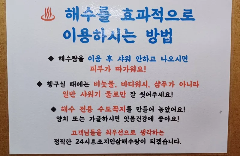 해수탕 이용 후 꼭 샤워를 해주세요.