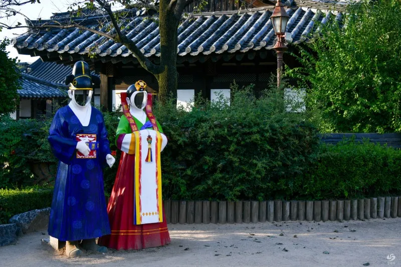 신랑신부가 되어보는 전통 혼례 체험을 할 수 있는 재미있는 공간도 있습니다. 이 체험을 더욱 생생하게 즐길 수 있도록 실제 혼례복을 입은 듯한 인형들이 세워져 있어 그 앞에서 사진을 찍으며 특별한 추억을 남길 수 있습니다. 가족, 연인, 친구와 함께 전통문화를 느끼며 특별한 순간을 남기에 좋은 장소인 것 같았습니다.