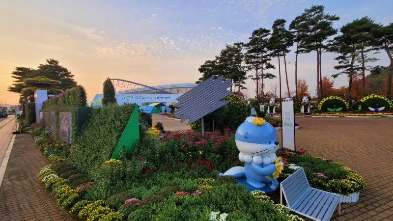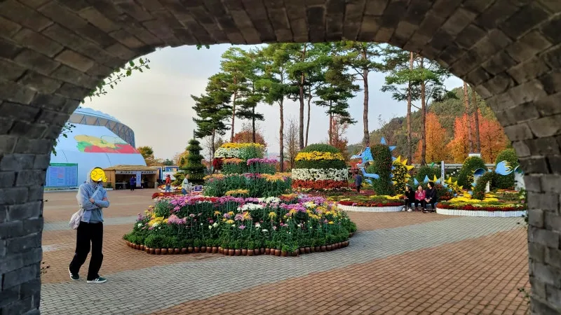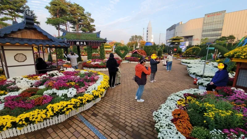 국화축제는 진주국제농식품박람회장을 포위한 듯